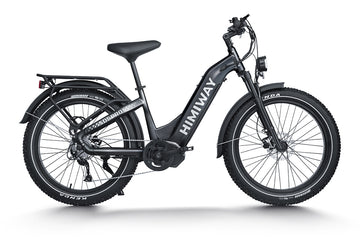 The Himiway E-bike Hitch Rack is specially designed for electric bicycles and can fix all Himiway ebike on the back of your vehicle. It can be folded up when not in use and tilted downward for easy access to goods. The entire design includes a key-like locking hook pin, safety cable and locking frame hook.